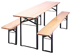 Ensemble pliant 50 Dimensions Table: 220 x 50 x 2,5 cm Hauteur: 77,5 cm 2 bancs: 220 x 27 x 3 cm couleur: naturel ou orange |
